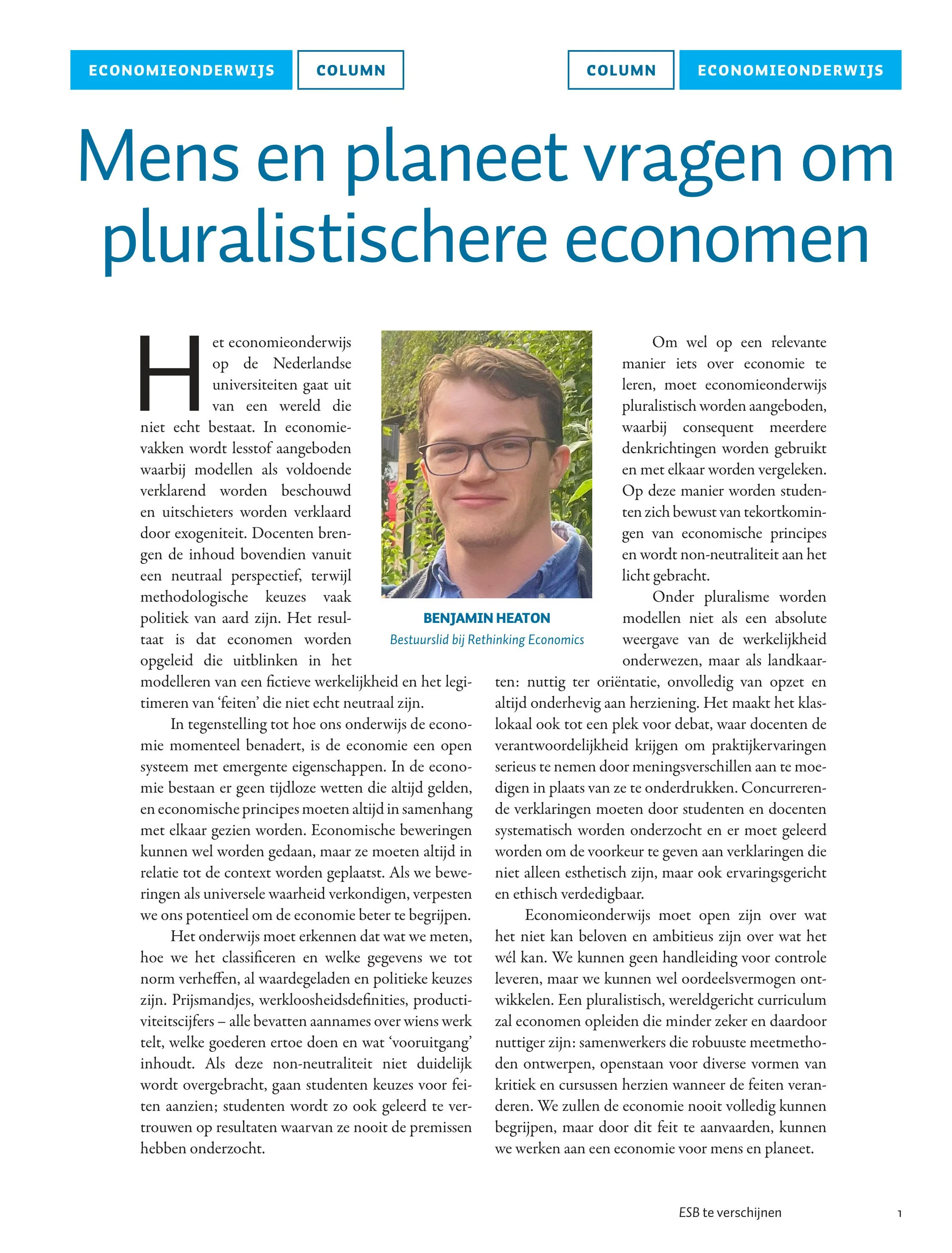 Read our column (dutch) about why economics education needs pluralism in the Economisch Statistische Berichten.